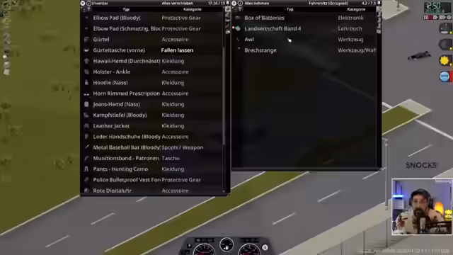 04:07:57Der Streamer hat viele Bücher gelesen, sucht aber weiterhin verzweifelt nach Büchern für Elektrotechnik, um das Kurzschließen von Autos zu erlernen, sowie nach Tischlerbüchern. Es wird erklärt, wie lange der Boost durch die Bücher anhält, nämlich solange, bis das jeweilige Level erreicht ist. Schutzwesten können nicht repariert werden, daher wird empfohlen, Ersatz mitzunehmen. Trotz viel Glück im aktuellen Run besteht Pech bei der Suche nach Elektrotechnik-Büchern. Im Real Life wurde bereits ein Buch über Generatoren gekauft. Es wird erklärt, dass man im Spiel durch das Ansehen von Fernsehsendungen zu bestimmten Zeiten (6, 12 und 18 Uhr) Skills in Bereichen wie Fischen, Nahrungssuche und Feinstellen erlernen kann.