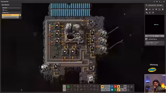 03:49:32Der Fokus liegt auf der Optimierung der Atomkraftwerkproduktion und der Urananreicherung. Die Diskussion zeigt die Herausforderung, dass die Uranproduktion nur 40 Einheiten prozyklisch benötigt, während die Produktionslinien für 80 ausgelegt sind, was zu Ineffizienz führt. Es wird eine Lösung erörtert, bei der Greifarme nur nachfüllen, wenn der Vorrunter 40 Einheiten unterschreitet. Zudem wird die Lagerung von Uran in Kisten angesprochen, deren Leerung über einen zukünftigen Schredderer geplant ist. Es wird kritisch darauf hingewiesen, dass der Ölvorrat der Fabrik rapide absinkt und dringend eine Expansion notwendig ist, um die Produktion von Flammenwerfern und anderen ölabhängigen Geräten aufrechtzuerhalten.