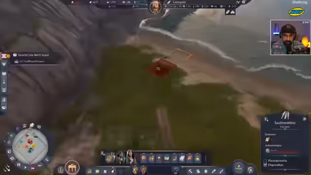 06:08:15Nach einer kurzen Unterhaltung entscheidet sich der Streamer für den Veteranen-Schwierigkeitsgrad, der als extrem anspruchsvoll beschrieben wird. Herausforderungen umfassen spärliche Fruchtbarkeit, keine Baukostenerstattation, schwere Zwischenfälle und Angriffe durch Gegner. Der Start auf einer neu gefundenen Insel gestaltet sich schwierig, da wichtige Ressourcen wie Fisch fehlen und anfangs eine negative Bilanz droht.