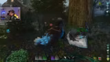 03:04:54Hauptziel des Streams ist die Zähmung eines Frosches, der im Sumpfgebiet gesucht wird. Der Frosch ist essentiell, um Chitin für den Sattelbau und für das Farmen von Keratin zu erhalten. Die Suche gestaltet sich schwierig, da der Sumpf von aggressiven Insekten und anderen Kreaturen bewohnt ist. Nach einigen Anversuchen kann ein Frosch (Nocaulus) erfolgreich betäubt und gezähmt werden. Das Team plant nun, direkt im Sumpf mit dem gezähmten Frosch Chitin zu farmen.