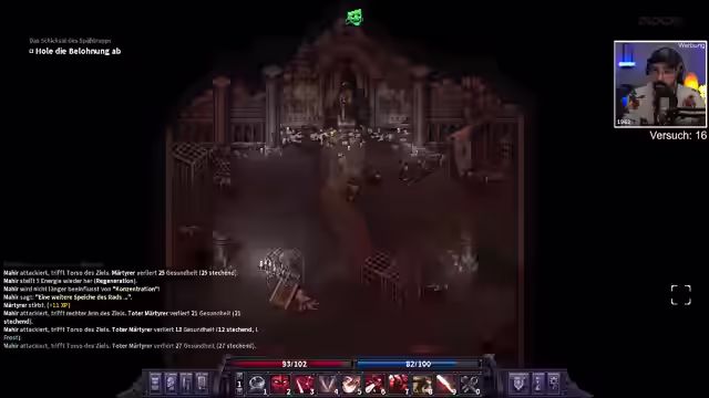 03:33:51Der Streamer looted in einem Dungeon und sucht nach Siegeln, um eine Quest abzuschließen. Er vermeidet Fallen und kämpft gegen Gegner. Es wird erwähnt, dass der aktuelle Spielstand bereits 20-25 Stunden umfasst, was den Wunsch, nicht zu sterben, verstärkt. Ein Zuschauer bedankt sich für den Prime Sub. Der Streamer erklärt, dass es im Spiel auch einen Speicher- und Ladefunktion gibt, für die Leute, die nicht Permadeath spielen wollen. Er selbst bevorzugt aber den Permadeath-Modus. Es werden Zauberbücher und andere Gegenstände eingesammelt. Ein Zuschauer fragt, wie es aussieht, wenn man stirbt, woraufhin der Streamer antwortet, dass man es vielleicht noch sehen wird, aber hoffentlich nicht heute. Es wird erwähnt, dass dies der letzte Run ist, bevor eine Pause eingelegt wird. Der aktuelle Run ist der erfolgreichste bisher, da er über Level 6 hinausgekommen ist. Der Streamer hat eine wichtige Mechanik vergessen, nämlich die Karawane, die man upgraden kann. Die Karawane ist wie eine kleine Stadt, die man mit sich führt, mit der man reisen kann und in der man Leute einstellen und verbessern kann. Dort kann man auch kleine Farmen anlegen. Der Streamer findet diese Funktion sehr gut. Es wird bedauert, dass ein Rabatt für Stone Shard verpasst wurde, aber betont, dass das Spiel ja nicht wegläuft und weiterentwickelt wird. Der Streamer identifiziert einen Trank und entschärft Fallen. Es wird eine Liste mit Learnings aus den ersten Versuchen erwähnt, die aber als "kompletter Bullshit" bezeichnet wird. Nach dem Kampf gegen einen Boss werden die Folgen auf YouTube hochgeladen. Es wird erklärt, dass der Streamer ohne Wiki und Tipps von Chat spielt, um die Herausforderung zu meistern.