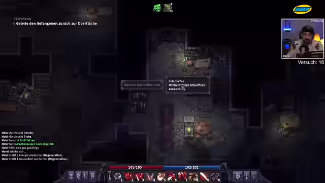 05:26:39RimWorld wird auf morgen verschoben, da das aktuelle Spiel so spannend ist. Es wird betont, dass es demnächst viel RimWorld geben wird. Die Gegner werden einzeln angelockt, um die Kämpfe smart zu gestalten. Oben sieht es nach Boss-Loot aus. Das Dungeon hat mehrere Stockwerke, was überraschend ist. Es geht in die Tiefe runter. Es wird ein sehr gefährlicher Gegner entdeckt. Es muss schnell getötet werden. Es wird Durst festgestellt und getrunken. Es wird ein smarter Zug gemacht, indem ein Angriff geblockt wird. Es wird überlegt, ob der Run bis 22 Uhr oder 0 Uhr überlebt. Es ist kalt. RimWorld gibt es morgen. Es wird auf YouTube verwiesen, wenn man RimWorld sehen möchte. Die Leute glauben an den Erfolg des Runs. Das Dungeon ist riesig. Es wird ein Mensch gefunden, der gar nicht so wertvoll ist. Es wird festgestellt, dass die Hutreparatur gut war. Es wird überlegt, ob zuerst oben oder unten erkundet werden soll. Es wird sich für oben entschieden. Es werden T3-Gegenstände gefunden, aber T4 wird im Bossloot erwartet. Es wird festgestellt, dass die Gegner im Dungeon nicht gekitet werden können. Es wird überlegt, den Schlafsack mit runterzubringen. Es wird langsam gespielt und keine Kisten kaputt gemacht, um keine Gegner anzulocken. Ein sehr gefährlicher Gegner wird entdeckt. Es wird sich fast selbst getötet. Es gibt kaum Heilung. Es wird klargestellt, dass es heute kein Rimworld gibt. Es wird im Discord angekündigt, dass Rimworld auf morgen verschoben wird. Es wird festgestellt, dass alles irgendwie nicht so cool ist. Es wird gefragt, ob man den Dungeon verlassen und wieder zurückkommen kann, um Heilung zu kaufen. Es wird beschlossen, zurückzugehen, um Heilung zu holen. Es wird betont, dass es keinen Sinn macht, ohne Heilung weiterzukämpfen. Es wird festgestellt, dass der Metall eh voll ist und das Zeug kaum wieder verkauft werden kann. Es wird sich gefragt, wie viel Zeit noch für die Mission ist. Es wird festgestellt, dass noch drei Tage Zeit sind. Es wird erklärt, warum der Waffenwechsel nicht mehr am Anfang des Kampfes genutzt wird. Es wird betont, dass man aufpassen muss, den Waffenwechsel nicht gegen Gegner zu nutzen, die anstürmen können.
