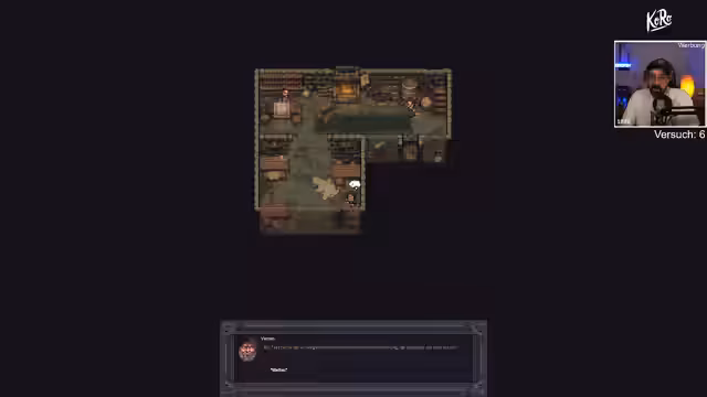 00:25:44Der Streamer startet den Prolog mit dem Charakter Varin, der in einem Kerker gefangen ist. Nachdem er sich von seinen verrosteten Fesseln befreit hat, durchsucht er die Leiche seines toten Freundes und findet Nahrung und Wasser, um seine Hunger- und Durstwerte zu stabilisieren. Nachdem er den ersten Gegner, einen Wachen, besiegt hat, erkundet er die Umgebung weiter und stößt auf mehr Leichen und interaktive Objekte. Dabei wird er in eine Falle gelockt, die ihm eine Beinverletzung zufügt, und muss nun eine Lösung finden, diese zu versorgen, bevor sie sich verschlimmert.