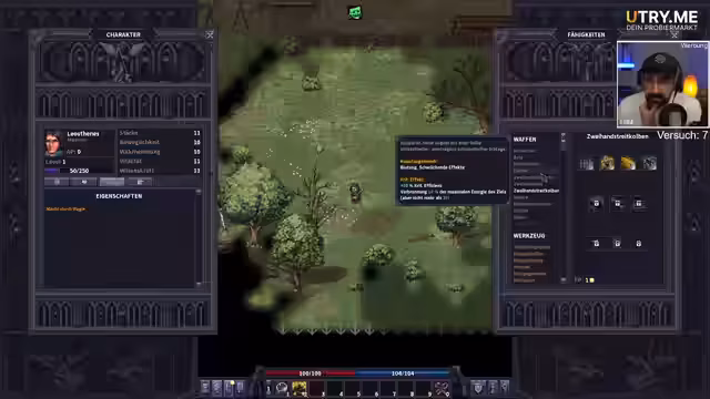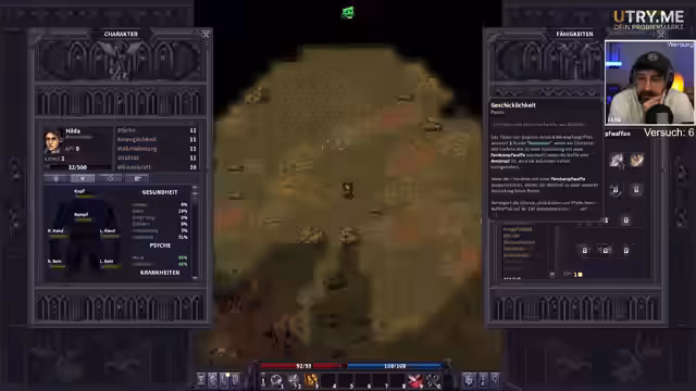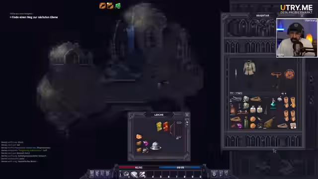 01:05:21Der Streamer kämpft gegen mehrere Gegner, darunter zwei Kultisten, die sich gegenseitig attackiert haben. Obwohl er erste Rückschläge hinnehmen muss, gewinnt er an Erfahrung und erhält Attributepunkte, die er in Stärke investiert. Er sammelt Ratten und kocht sie, um seinen Hunger zu stillen und seine Gesundheit zu regenerieren. Dabei entdeckt er den Nutzen von Schlafen und Spiritus zur Behandlung von Verletzungen und zur Erholung. Sein Hauptziel bleibt der Aufstieg aus den Katakomben, um die Hauptmission anzunehmen.