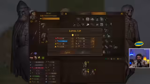 02:00:03Nach dem Erreichen des ersten 'Squire' des Runs analysiert der Streamer dessen Potenziale. Zwar hat der 'Squire' mit 'Adaptive' interessante Perks, doch seine schwache Basiswerte und das Fehlen wichtiger Perks wie 'Recover' oder 'Steel Brawny' machen ihn ungeeignet für den Veteranen-Schwierigkeitsgrad. Der Streamer steht vor der Herausforderung, einen fähigen Kämpfer zu finden, da auch der aktuelle Charakter nur mittelmäßige Werte aufweist.
