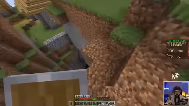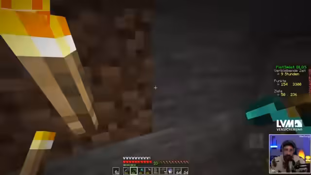 04:30:37Der Streamer konzentriert sich darauf, Eisen durch Abbau zu finden, besonders auf Höhe 16, wo sich Eisenerz am häufigsten findet. Er hat Kopfschmerzen und ist unkonzentriert, was das Minen erschwert. Er plant, den Amboss zu craften und die Waffen mit Enchantments wie Plünderung 3 auszustatten, um besser looten zu können. Er spürt den Zeitdruck, da sie nur noch knapp 8 Stunden Spielzeit haben.