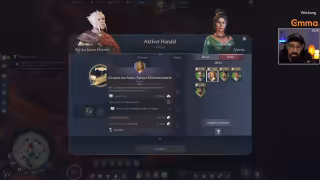 02:35:09Während der Kriegsvorbereitungen optimiert der Streamer seine Produktion, besonders bei Mangelwaren wie Garum. Gleichzeitig unterbricht der Stream sein Gameplay, um über alltägliche Dinge zu sprechen, wie seine Kaffeepause und Bestellungen beim Online-Händler Koro, was eine lockere, persönliche Note in den Stream einbringt und die emotionale Belastung des Spiels kurzzeitig abmildert.