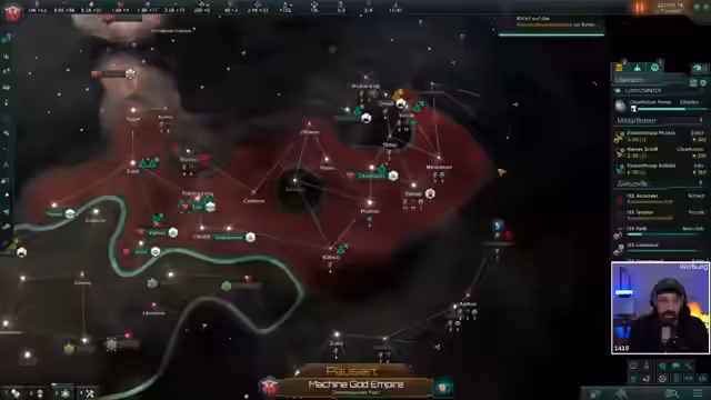 01:15:50Würmer werden als vierte Paria bezeichnet und können schnell zu einem Problem werden, da sie sich vermehren und Kinder auf den Planeten abschießen. Um das eigene Reich abzusichern, werden sogenannte Chokepoints strategisch wichtig. Dies sind Engstellen im Weltraum, die durch Sternbasen blockiert werden können, um feindliche Eindringlinge aufzuhalten. Die Frage ist, ob eine Sackgasse oder das Schließen von Chokepoints im eigenen Gebiet strategisch sinnvoller ist.