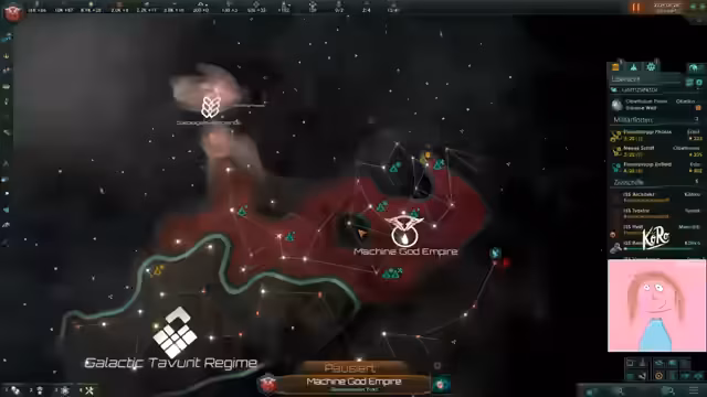 02:10:05Nachdem er die Fraktion von seinem Planeten vertrieben hat, konzentriert sich der Streamer auf die Erkundung der umliegenden Systeme. Er stößt auf Anomalien und eine interessante technologische Entdeckung: 'Göttliche Implantate'. Diese verleihen verschiedene Boni, wie erhöhte Bewohnbarkeit, Armeeschaden und Ressourcenproduktion. Er entscheidet sich, diese Forschung voranzutreiben und stellt gleichzeitig die Effizienz seiner Forschungsschiffe in Frage.