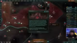00:23:14Nach einiger Diskussion startet der Streamer ein neues Spiel, um die Fraktion für das morgige Stellaris-Event zu erstellen. Es handelt sich um ein Maschinen-Gott-Reich namens 'Sangvophage', die an RimWorld angelehnt ist. Die Spezies ist fanatisch-spiritualistisch und hat das Ziel, kybernetische Augmentierungen voranzutreiben, was die Geschichte aus dem HumanitZ-Stream fortsetzen soll.