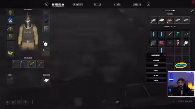 07:14:16Der Streamer konzentriert sich auf die Suche nach Eisenerz, das er an einem grünen Dreieck auf der Karte findet. Er findet auch Salpeter und beginnt, diese Ressourcen zu farmen. Anschließend kehrt er zur Base zurück, wo er neue Gegenstände wie ein Chemistry Station herstellt, um Munition herzustellen. Er plant, seine Base weiter auszubauen und benötigt dafür einen Improvised Kühlschrank und einen Host, um Kraftstoff und Alkohol herzustellen.