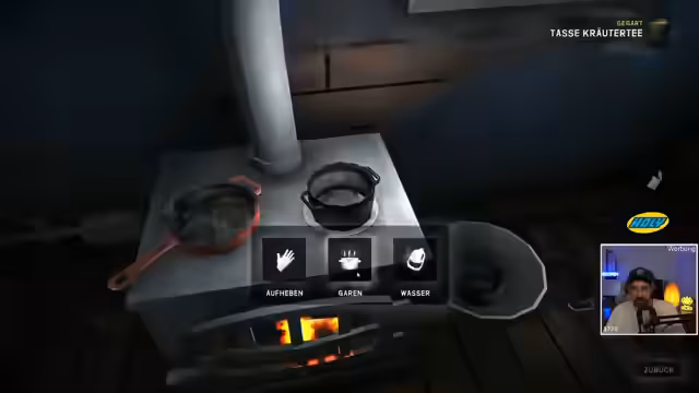 02:56:04Der Streamer befindet sich in einer prekären Situation. Er ist fast am Ende seiner Gesundheit, hat kaum noch Holz für Feuer und muss sich um die verbleibenden Wolfskadaver kümmern, um die nötigen Materialien zu bekommen. Er entscheidet, sich zunächst in Sicherheit zu bringen, einen Kräutertee zur Heilung zuzubereiten und eine Weile zu schlafen. Das Wetter ist unbeständig und gefährlich, was das Beschaffen von Holz und das Verlassen des sicheren Gebäudes extrem riskant macht.