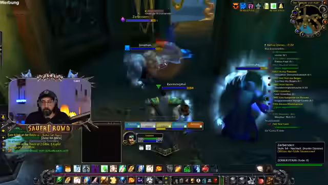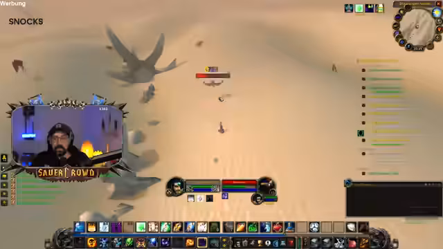 07:41:47Bei der Jagd auf die "temporale Parasiten" treten erhebliche Probleme auf. Diese Gegner spawnen nach ihrem Tod wieder und verursachen einen starken Magie-Debuff, der den Priester lähmt und seinen Zauberwirken verhindert. Die Gruppe ist aufgrund von Mana-Problemen und der unübersichtlichen Kampfsituation in Schwierigkeiten geraten. Nach dem ersten verlorenen Kampf wird eine neue Strategie erarbeitet, bei der die Spieler näher zusammen bleiben und besser aufeinander aufpassen müssen.