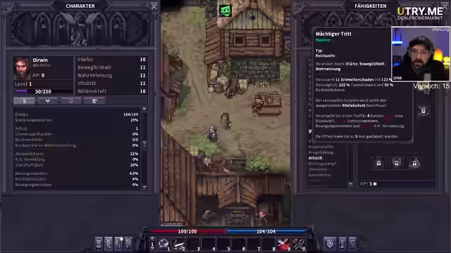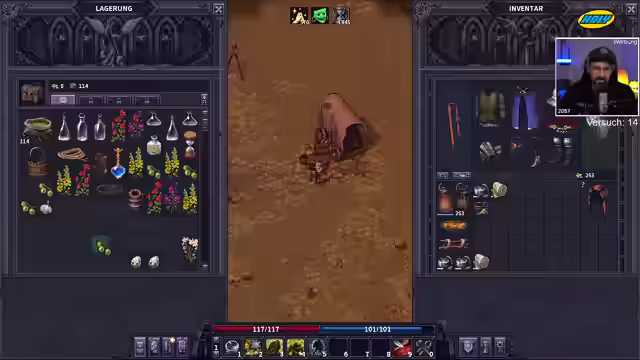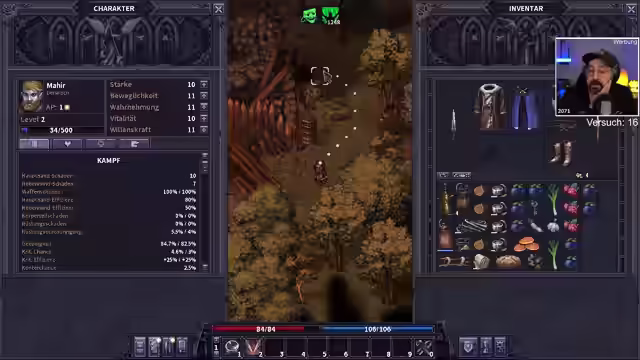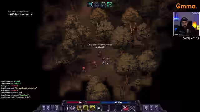 00:11:20Der Stream startet mit dem Spiel Stoneshard. Abhängig vom Spielverlauf und der eigenen Frustration wird entschieden, ob Rimworld oder Galactic Survivor gespielt wird. Der Fokus liegt auf Stoneshard, wobei der Streamer offen für spontane Änderungen ist. Es wird Deep Rock Galactic erwähnt, aber die endgültige Entscheidung hängt vom Verlauf des Stoneshard-Runs ab. Der aktuelle Stoneshard-Run befindet sich bei der Brauerei, wo der Bürgermeister aufgeflogen ist und nun seine Schergen beseitigt werden sollen. Der Charakter, ein Erdbändiger namens Leos Tenis, hat bereits einige Aufgaben erledigt und ist mit Runensteinen und guter Ausrüstung ausgestattet. Ziel ist es, ein starker, tankiger Erdbändiger zu werden, der auf Vitalität, Stärke, Streitkolben und Schilde setzt, um Gegner zu betäuben und viel Schaden zu blocken. Der Streamer experimentiert mit einer heißen Zitrone gegen eine leichte Erkältung und freut sich auf den Run, obwohl er sich noch nicht ganz von der gestrigen Rimworld-Session erholt hat.