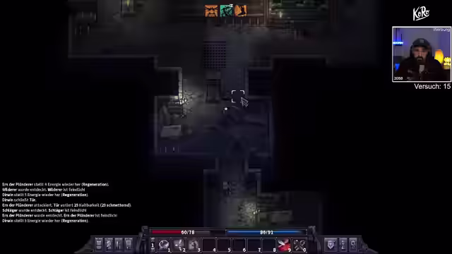 In Stoneshard scheitert der Versuch, einen tankigen Erdbändiger zu spielen. Unerwartet schnelle Tode durch Wölfe zwingen zu einer Strategieänderung. Statt auf Rüstung setzt edopeh nun auf Ausweichen, Fernkampf und Fallen. Ziel ist es, Tiere zu meiden und mit einem neuen Build erfolgreich zu sein. Der aktuelle Run soll Level 7 erreichen.