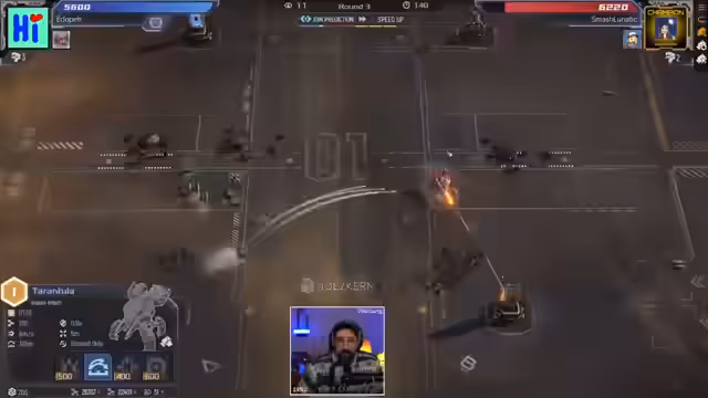 05:00:24Die Streamer erleidet mehrere harte Niederlagen, verursacht durch übermächtige gegnerische Einheiten wie Level 6 Scorpions mit Reparierfähigkeiten und Power Würmer. Er äußert seine Verärgerung über die Stärke dieser Einheiten und versucht, Gegenstrategien zu entwickeln, darunter den Einsatz von kleinen Einheiten, um die Würmer abzulenken und mehr Chef-Upgrades für bessere Verteidigung. Trotzdem gestehen sich die Spieler gegenseitig zu, dass diese Runden unvermeidbar verloren waren.