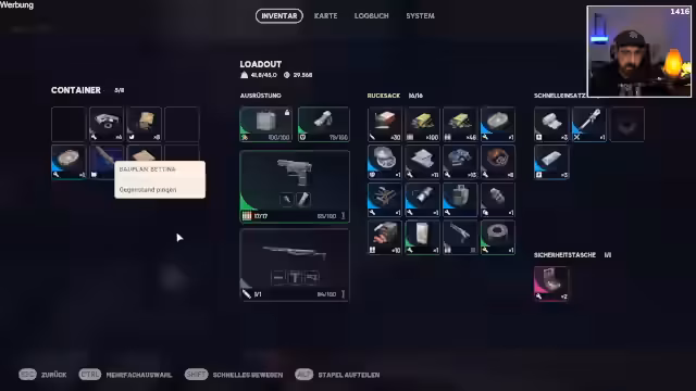 06:05:05Der Streamer erkundet differente Kartenbereiche, um Loot zu sammeln und Quests zu erfüllen. Er findet verschiedene Gegenstände wie Waffen, Munition und Rüstungen, die für das Überleben im Spiel wichtig sind. Dabei wird er immer wieder von Gegnern angegriffen und muss gleichzeitig seine Ressourcen verwalten, um nicht zu überladen oder wichtige Items zu verlieren.