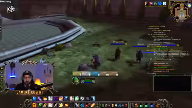 07:47:09Der Streamer startet den Klosterdurchlauf mit seinem Partner Grubby und wechselt dabei unentwegt zwischen den Flächen. Bei Boss-Gegnern wird versucht, Drops zu analysieren, wie zum Beispiel bei Glitters Vater, für den es aber keine Drops für Krieger gibt. Nach erfolgreichem Kampf beschwert sich jemand über verpasste Drops und ein Glitch, der den Boss wiederbelebt. Der Streamer betont die Notwendigkeit, intelligenter zu spielen und erklärt Buff-Mechaniken. Ein fetter Pull führt zu Problemen, wobei unklar ist, wer schuld ist. Grubby wird beschuldigt, den Buff entfernt zu haben, was zu einem heftigen Chat-Disput führt.