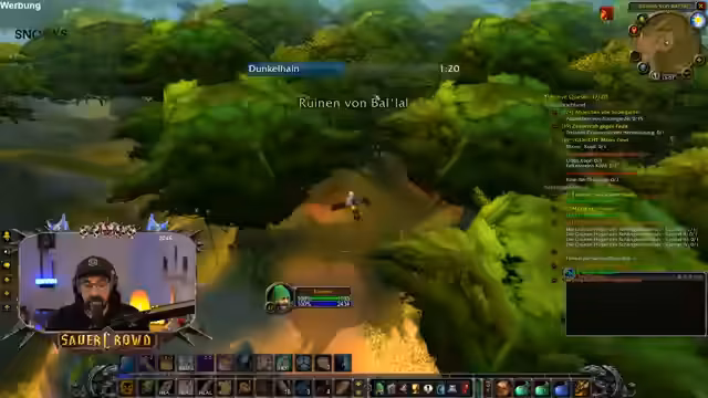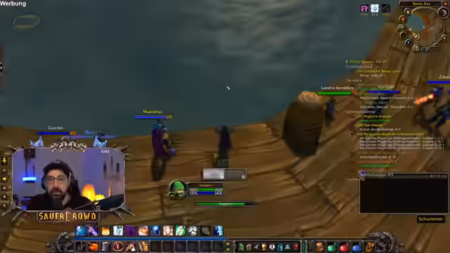 05:45:02Nachdem alle Mitglieder zusammengekommen und die Buffs erhalten haben, fliegt die Gruppe nach South Shore, um den Dungeon zu betreten. Der Streamer beschreibt den lauten und lebendigen Ort, was das MMO-Feeling betont. Während des Spiels gibt es Diskussionen über Charakterrollen, Stärken und Schwächen. Der Streamer fragt, warum niemand den Namen "Drachen" korrekt schreiben kann, was zu einem kurzen humoristischen Dialog führt.