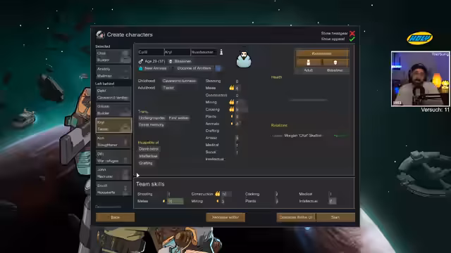 02:48:14Der Streamer erkundigt sich nach Wissen über die Kombination von Sprüchen und Schadensarten in NOITA und kommt zu dem Schluss, dass er in Richtung Blut und Kritik gehen muss. Anschließend wechselt er zu den Plänen für den aktuellen RimWorld-Stream. Das übergeordnete Ziel ist es, innerhalb des Streams ein Raumschiff zu bauen und mit diesem zu fliehen, um der Void-Gefahr zu entkommen. Um die schwere Mission zu meistern, werden spezielle Charaktereigenschaften gesucht, darunter 'Tough', 'Mining' und 'Shooting'. Der Streamer beschließt, seine Charaktere mit zwei mächtigen Items aus vorherigen Durchgängen zu verbessern: 'Void Touched', was das Bedürfnis nach Schlaf und Komfort eliminiert, und 'Cerebrix Node', die es ermöglicht, Mechanoiden zu kontrollieren.