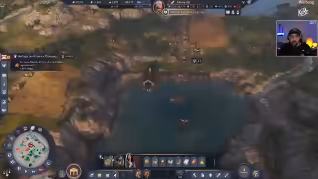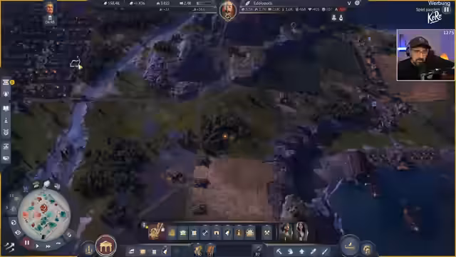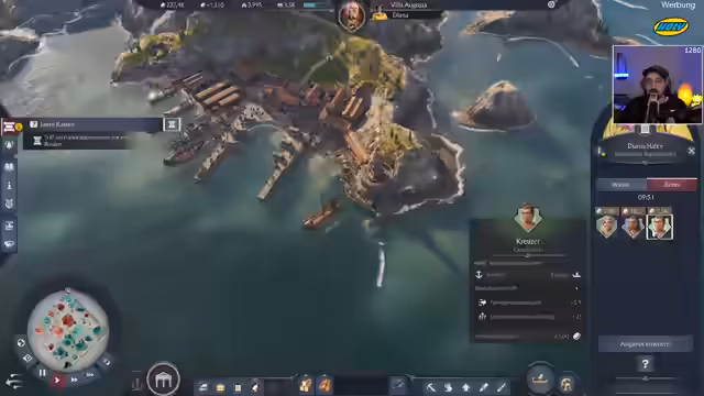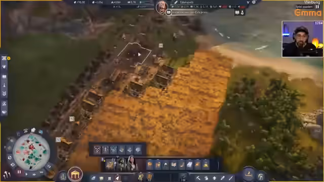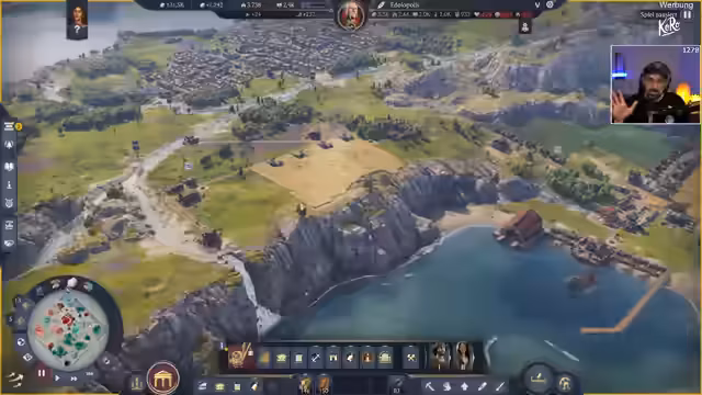 00:16:34Der Streamer startet zwei Stunden Anno auf dem Veteranen-Spielstand und äußert Bedenken bezüglich der Schwierigkeit, da ihm bereits ein Großteil der Welt im Latium von den Gegnern weggenommen wurde. Er befürchtet, dass Albion, die nächste freizuschaltende Welt, bereits vollständig besiedelt sein könnte, bevor er dort ankommt. Aktuell konzentriert er sich auf seine Hauptinsel im Latium, die eine Bevölkerung von knapp 4.000 Einwohnern und eine positive Bilanz von 131.000 Münzen aufweist. Er rekapituliert den aktuellen Stand: Neben der Hauptinsel wurden drei weitere Inseln besiedelt – eine Mini-Insel für Eisenerz und Oliven, eine weitere für Harzvorkommen zur Amphorenherstellung und eine dritte für Makrelen zur Garum-Produktion. Er stellt fest, dass im Latium keine unbewohnten Inseln mehr verfügbar sind, was bedeutet, dass weiteres Land nur durch Krieg erobert werden kann. Ein Vergleich der Militärstärke zeigt, dass der stärkste NPC ihm weit überlegen ist, während er gegen Concordia und Zara Nitu eine Chance hätte. Der Plan ist, zuerst die schwächeren Gegner auszuschalten, um deren Ressourcen zu nutzen und so zu wachsen, um schließlich den stärksten Spieler besiegen zu können.