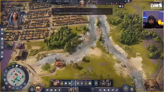 01:42:54Die Stadtentwicklung schreitet voran, jedoch treten erste Herausforderungen auf. Die Produktion von Seife stockt, da eine Seifenmanufaktur fehlt, obwohl genügend Schmalz und Lavendel vorhanden sind. Es besteht die Sorge vor einem Ausbruch der Seuche in den oberen Stadtbereichen, was die Notwendigkeit von Hygieneeinrichtungen wie Toiletten unterstreicht. Die Aufrüstung von Warenhäusern ist möglich, wird aber durch einen Mangel an Arbeitskräften behindert. Um diesem Engpass entgegenzuwirken, wird überlegt, neue Wohnräume entlang der Felder zu schaffen. Des Weiteren wird die Forschung an besseren Straßen vorangetrieben, da die aktuelle Infrastruktur den Warenfluss behindert und die öffentliche Gesundheit leidet, bis Beton für den Straßenbau verfügbar ist.