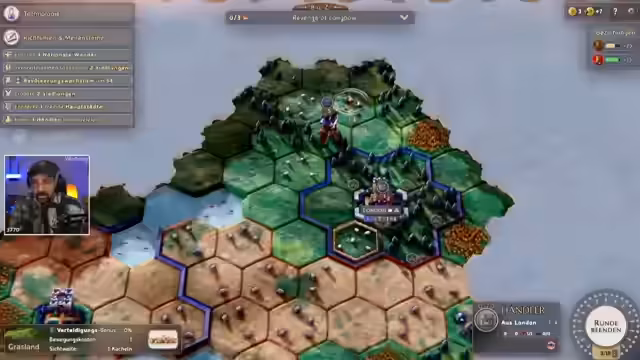 03:23:36Es wird festgestellt, dass fast alle Technologien erforscht wurden und nun ein Händler zum Ziel geschickt werden kann. Es wird weiterhin versucht zu verstehen, wie religiöse Städte eingenommen werden können. Es werden weitere Einheiten gebaut, darunter teure Bogenschützen und Kavallerie. Es wird die strategische Bedeutung von Kämpfen hervorgehoben, bei denen die Einheiten unterschiedliche Fähigkeiten haben. Straßen werden als sinnvoll erachtet, um schnell neue Einheiten an die Front zu bringen. Es wird eine Richtlinie gewählt, die zusätzliche Bevölkerung in eigenen Siedlungen und zusätzliches Einkommen in fremden Hauptstädten generiert. Es wird überlegt, wie der Glaube in einer Siedlung verbreitet werden kann, entweder durch Eroberung oder durch den Bau einer weiteren Siedlung. Es werden Einheiten wie Schwertkämpfer, Ballisten und Katapulte produziert. Es wird festgestellt, dass alle Forschungen abgeschlossen sind und nun Einheiten gebaut werden können, um zu pushen und zu erobern. Es wird angemerkt, dass der Sound beim Überschreiten der Ländergrenze zu laut ist und angepasst werden muss. Es wird ein Achievement freigeschaltet, weil alle Forschungen abgeschlossen wurden. Es wird betont, dass die verbleibende Zeit genutzt werden soll, um alle Einheiten zu bauen und zu sehen, wie sie aussehen.