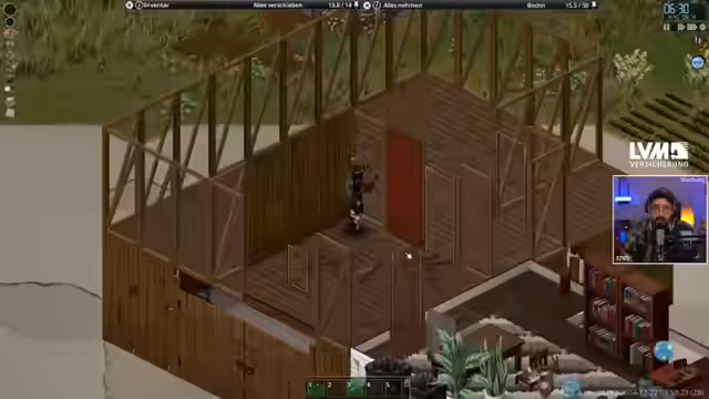 06:34:23Es wird die Lage der Base auf der Karte gezeigt, in der Stadt Maldrow, in der Nähe einer Tankstelle und eines Sägewerks. Der Streamer hat ein Problem, weil er nicht darüber nachgedacht hat, ob er noch an die Wand herankommt, um sie zuzubauen. Es wird darauf geachtet, dass kein Arbeitsunfall passiert und niemand herunterfällt. Es wird die rustikale Optik der Base gelobt und betont, dass der Charakter kein professioneller Schreiner ist. Es wird überlegt, Fenster einzubauen, aber entschieden, dass in einer Ecke kein Fenster hinkommt, weil dort etwas anderes geplant ist. Es wird betont, dass nicht höher als das aktuelle Level gebaut wird. Oben soll ein Fässer zum Wassersammeln stehen. Der Streamer freut sich über schnelle Antworten im Chat. Am Mittwoch wird auf dem Server von Pietz gespielt. Der Streamer hat ein Ziel, das er in dieser Welt erreichen möchte. Es wird empfohlen, dass die Leute auf einem Server in einer Stadt bleiben sollen, damit man sich auch sieht. Es wird darum gebeten, nicht über andere Streamer zu lästern. Der Streamer möchte respektvoll miteinander umgehen. Es wird die Map ganz rausgezoomt gezeigt. Es wird erwähnt, dass es Bunker auf der Map gibt. Der Streamer hat schon einen Bunker in Martridge gesehen. Es wird darüber gesprochen, dass Project Zomboid seit über 10 Jahren in Entwicklung ist und es deshalb so schwer ist, das Spiel zu klonen.