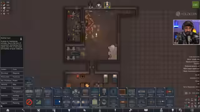 00:19:30Nach dem anfänglichen Glück wird die Bedrohung durch einen Angriff von Feinden spürbar. Es entspinnt sich ein Kampf, bei dem Kolonisten verletzt werden. Der Streamer erkennt die Notwendigkeit eines robusten Verteidigungssystems und beschließt, einen größeren Feingang aus Granit zu bauen. Parallel dazu soll eine Killbox mit Geschütztürmen errichtet werden, um zukünftige Angriffe besser abwehren zu können.