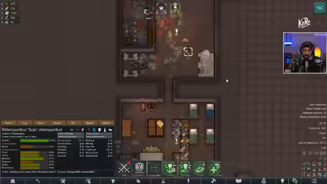 00:12:50Im RimWorld-Spielstand werden die neuesten Ereignisse erörtert. Die große Neuigkeit ist, dass Suki aus der Gefangenschaft des Imperators erfolgreich befreit wurde. Sie ist eine extrem wertvolle Kolonistin mit Fertigkeiten in Crafting, Schießen, Medizin und Social. Die Kolonie ist nun mit vier Mitgliedern stark und besteht aus den Craftern Suki und Luzi, dem Priester Matt und dem Bergarbeiter Smash. Es ist der Plan, Luzi aus dem Gefängnis zu befreien und Smash zu konvertieren.