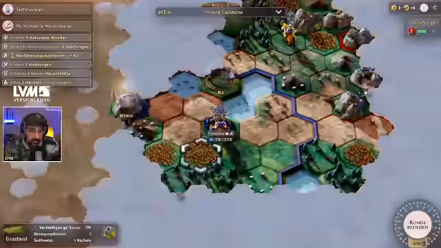 02:40:20Ein zentraler Aspekt des Spiels ist die Forschung. Der Streamer priorisiert Technologien wie Ackerbau und Steinmetzkunst, um Gebäude wie Gehöfte und Steinbrüche zu errichten, die Bevölkerung und Produktion erhöhen. Er erkundet den Forschungsbaum und erforscht später Infrastruktur, um Straßen zu bauen, die Bewegungskosten senken und die Verbindung zwischen Siedlungen ermöglichen. Die Entdeckung von Technologien wie Holzwirtschaft und Viehzucht eröffnet völlig neue strategische Möglichkeiten, wie die Errichtung von Weiden für Schafe.