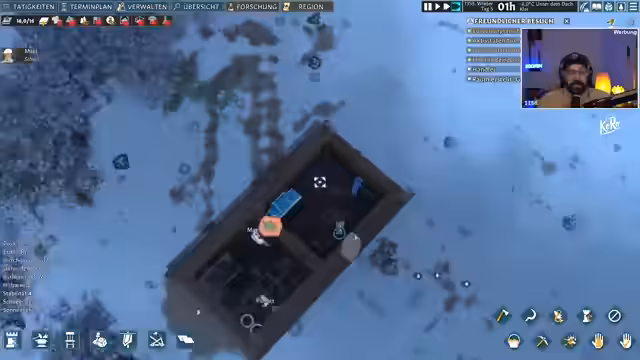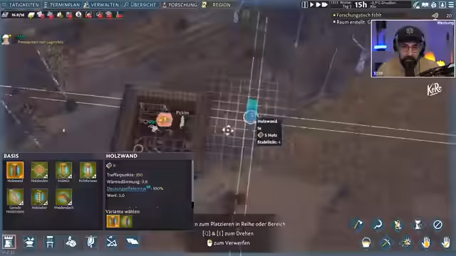 03:21:18Es wird über Twitch-Drops gesprochen und ein Haufen Ressourcen gefunden. Die neue Person 'Wautz' hilft beim Sammeln von Holz. Um die Kolonie zu schützen, werden Verteidigungsanlagen wie Holzzinnen geplant. Der Bau eines Kellers ist ein prioritäres Ziel, um Lebensmittel vor dem Winter zu lagern und eine kühlere Umgebung zu schaffen.