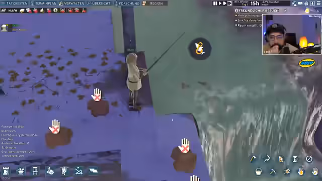 04:32:12Der Streamer beobachtet, wie die Schneebedeckung allmählich schmilzt und die Temperaturen steigen. Dies ist ein positives Zeichen, da neue Felder angelegt werden können und die Nahrungsversorgung durch Fische gesichert ist. Gleichzeitig beklagt er den schlechten Musikstil, der gerade läuft. Die Hitze macht es den Siedlern schwer, und es kommt zu mehreren Niederlagen in Kämpfen. Ein Siedler hat ein gebrochenes Bein, was zu einer erheblichen Verlangsamung der Produktivität führt.