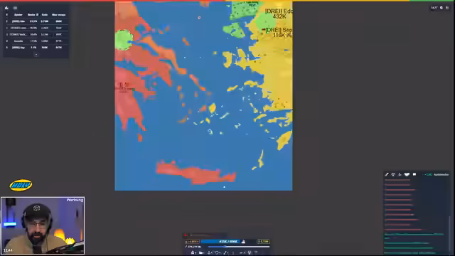 01:31:12In einer der neueren Ronden arbeiten die Spieler innerhalb ihrer Teams eng zusammen, um strategische Gebiete zu erobern und Ressourcen wie Truppen und Geld effizient zu verwalten. Es gibt klare Absprachen, wer welche Gebiete einnimmt und wer welche Ziele attackiert. Spieler bauen Häfen für den Handel und strategische Positionen und unterstützen sich gegenseitig mit Truppenverschickungen. Das Ziel ist es, den Gegner durch koordinierte Aktionen zu überrunden und Ressourcenknappheit beim Gegner zu erzeugen.