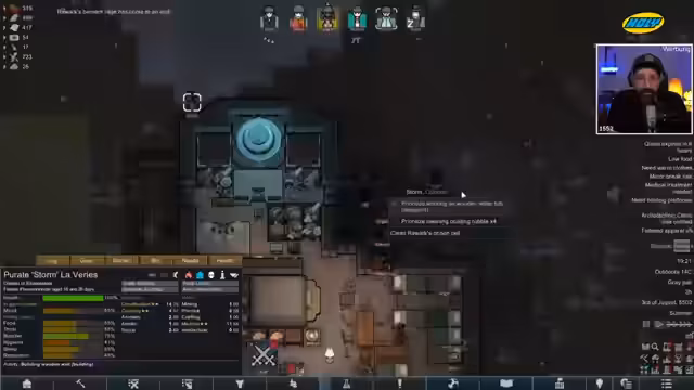 05:52:56Nach einem Kampf gegnerischer Drohnen und Explosionen hat das Team wichtige Ressourcen und Kolonisten verloren. Ein Hauptkolonist, Matt, ist gestorben. Der Streamer überlegt, ob er den Run neu beginnen oder versuchen soll, Matt mit seltenen Reanimationsnaniten wiederzubeleben, die nur in Ancient Dangers gefunden werden können.