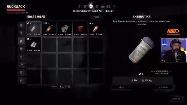 01:47:01Der Spieler beginnt mit der Herstellung eines Bogens aus Ahorn und Biegen, wobei er eine Werkbank benötigt. Er sammelt Ressourcen wie Pfeilspitzen, Pfirsiche und Bücher. Er plant, Kleidung herzustellen und zu jagen, um Materialien für die Überlebensausrüstung zu bekommen. Dabei nutzt er die Zeit, während die Därme trocknen.