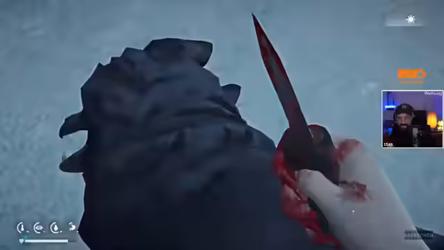 02:34:47Der Spieler setzt eine riskante Jagdstrategie um, indem er versucht, Tiere anzulocken und aus der Nähe zu erlegen. Er jagt erfolgreich einen Wolf und nutzt die Zeit, während die Ressourcen trocknen, um weiter zu jagen und die Gegend zu erkunden. Er muss jedoch ständig auf andere Raubtiere achten.