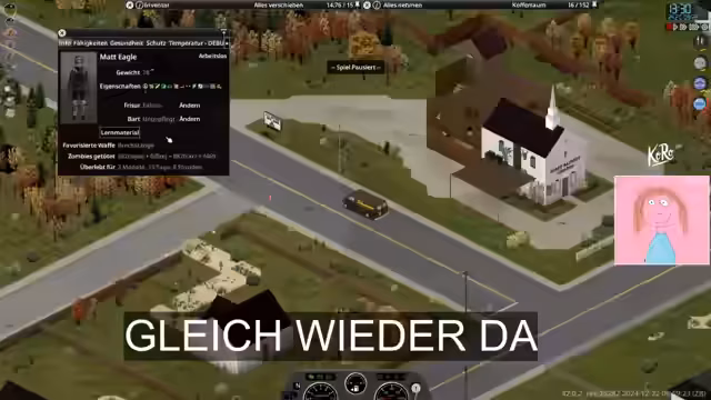 Der Kirchenrun in Project Zomboid schreitet voran. Die Kapelle wird umgebaut, während die Gruppe sich um die Nahrungsversorgung kümmert und einen Ausflug nach West Point plant. Es gab auch Diskussionen über Spielmechaniken, Realismus und Balancing.