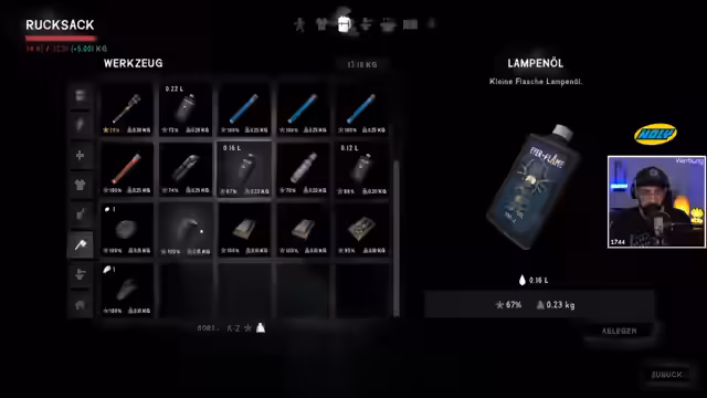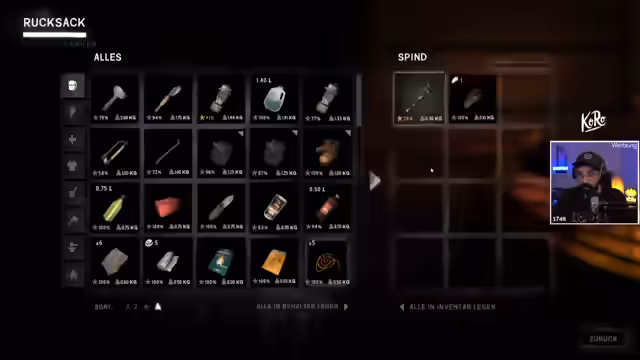 04:24:56Vor dem weiteren Weg wurde das Inventar neu sortiert und unnötige Gegenstände abgelegt. Der Streamer hatte Bedenken, zu überladen zu sein, und musste daher Entscheidungen treffen, welche Gegenstände mitgenommen werden sollten. Gleichzeitig wurde die Feuertonne im Raum positioniert, um kochen zu können. Es wurde erwähnt, dass der Sender repariert wurde, ohne dass der Streamer wusste, wofür dieser dient.