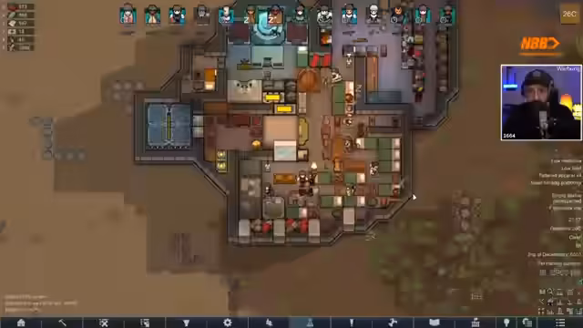 02:34:31Der Streamer beginnt die Runde mit der Ankunft neuer Kolonisten, darunter Leslie, die als Schneiderin und Minenarbeiterin fungiert und Valorant spielt. Er stellt fest, dass sein Raumschiff mit nun 14 Kolonisten an Platzmangel leidet und überlegt, Betten abzubauen, um Platz zu sparen. Er entscheidet sich jedoch dagegen, da die Kolonisten eigene Bette wünschen. Zudem heilt er die Kolonistin White und diskutiert über die Vor- und Nachteile von Nachtäuren, die tagsüber schlafen, aber nachts aktiv sind und dabei keine Nachteile haben. Eine Idee zur Herstellung einer Statue aus Stahl wird erwogen.