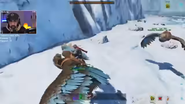 02:48:48Bereit für die nächste Herausforderung, brechen der Streamer und sein Partner zur Expedition ins Eisbiom auf. Sie nehmen ihre neuen Rüstungen, Heiltränke und Vorräte mit. Anstelle der bisherigen Reittiere werden spezielle Dinos wie Arctos und ein Ankylosaurus für die Reise genutzt. Das Ziel ist es, Perlen zu sammeln, um weitere technologische Fortschritte zu ermöglichen und die Basis mit Elektrizität zu versorgen.