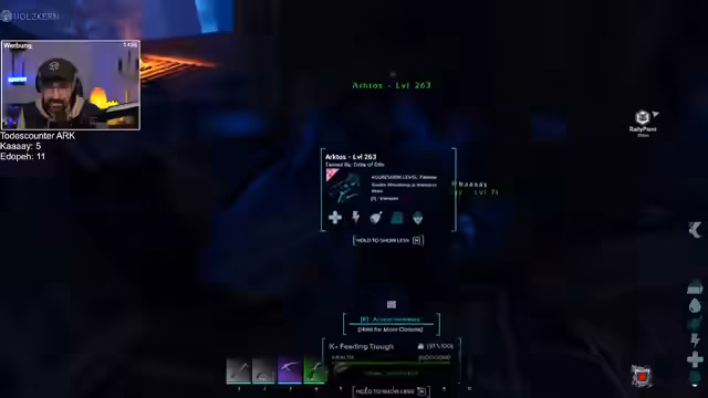 00:00:00Der Stream startet mit technischen Anpassungen der Auflösung für das Chat-Erlebnis. Der Streamer und Kevin, nach einem Urlaub bzw. einer Stream-Pause, verbinden sich wieder mit dem Ark-Server. Eine unerwartete Server-Laufzeit hat zur Folge, dass die Tageszeit und der Spieltag zurückgesetzt werden, was jedoch laut Streamer keinen spielentscheidenden Vorteil oder Nachteil darstellt. Die Dinos der alten Basis sind aufgrund der Zeit vergammelt, weshalb zunächst die grundlegenden Überlebensbedürfnisse wie Nahrung und Ressourcen neu organisiert werden müssen.