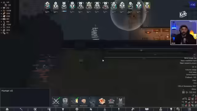 Die RimWorld-Kolonie steht vor dem Untergang durch imperiale Satelliten. Ziel ist es, entscheidende Missionen abzuschließen, um das Imperium zu schwächen. Performance-Probleme und Angriffe fordern die Spieler heraus, den Run trotz allem zu einem Abschluss zu bringen. Morgen gibt es Project Zomboid und das Dark Souls Training startet. Holzkernwerbung mit Natascha.