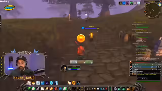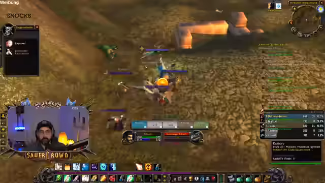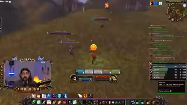 05:45:03Ein technisches Problem verhindert, dass ein neuer Spieler zur Gruppe hinzukommt. Der Streamer muss die anderen Spieler manuell aus der Gruppe entfernen, damit der neue Mitspieler eintreten kann. Dies zeigt die notwendige manuelle Koordination in einem MMO. Nachdem das Problem gelöst ist, geht es weiter mit dem Questen. Der Streamer stellt fest, dass man als Jäger Abstand zu den Gegnern halten muss, um effektiv Schaden machen zu können, was eine gute Positionierung erfordert.