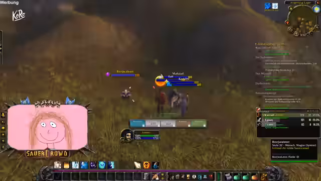 00:49:40Nachdem alle wichtigen Quests im Sumpfland, inklusive der Erschlagung des Murloc-Bosses Gobbler, erfolgreich abgeschlossen sind, steht der nächste große Schritt an. Der Streamer und seine Gruppe beschließen, den aktuellen Quest-Grind abzubrechen. Stattdessen soll nun ein Dungeon absolviert werden, um die Erfahrungspunkte zu maximieren und weiteren Fortschritt zu erzielen. Man wartet kurz auf den verpassten Mazat, um die Gruppe zu komplettieren.