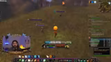 01:58:53Ein Running Gag des Streams ist der sogenannte 'Kaddi-Jinx'. Als sie im Gilden-Chat postet, dass niemand sterben soll, stirbt kurz darauf ein Mitspieler. Gleichzeitig erreicht der Streamer selbst Level 30, was er im Chat bekannt gibt und feiert. Die Gruppe bündelt nun ihre Kräfte, um die letzten Quests wie die Kriegsflaggen und die Midas-Tasche gemeinsam zu erledigen.