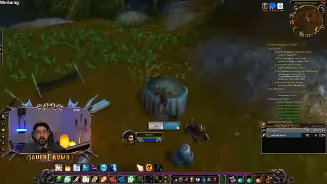 02:56:37Der Streamer bewundert die detailreichen Wettereffekte im Spiel, die gerade einsetzten und eine immersive Atmosphäre schaffen. Der Regen behindert dabei aber auch die Kommunikation. Die Gruppe erkundet weiterhin das Spielgebiet, nutzt Makros für das Heilen und die Zielverfolgung und versucht, die Kampfmechaniken zu optimieren. Der Fokus liegt auf effizientem Questing und Leveln, wobei der Streamer auch über den Loot nachdenkt, insbesondere über Ausrüstung mit speziellen Boni, die er nutzen oder für die Gilde freigeben kann.