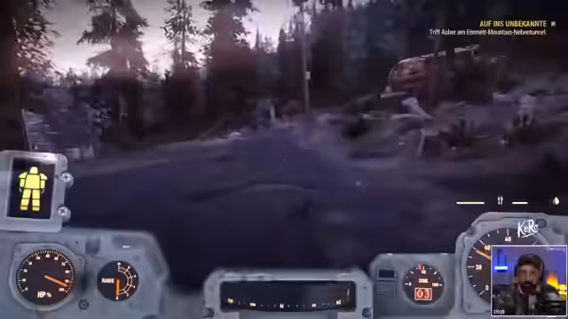 04:15:53Der Streamer fragt, ob er in die richtige Richtung läuft. Er will Basebuilding machen und es können richtig krasse Sachen gebaut werden. Er bedankt sich bei einem Zuschauer für die Unterstützung. Er fragt, wie gut seine Nagkraftwaffe ist. Er trifft auf wilde Ghoulis, die er nicht werden will. Die Nagkraftwaffe ist nicht so stark. Er hat seinen Charakter gar nicht geskillt und will ihn auf den Ghoul, auf Nahkampf skillen. Er ist gespannt auf die ganzen Perks. Er muss das hinkriegen, dass er das mal... Das ist wahrscheinlich echt oben der Eingang. Es gibt keine bessere Möglichkeit für Schnellreise, um von oben zu kommen. Der Damage kommt überwiegend durch die Perk-Karten. Er muss seinen Char skillen, aber er wollte erst einmal die Ghoul-Quest erledigen. Dann skillt er den Ghoul und geht komplett auf Nahkraft. Er sieht eine Spieler-Base. Er spielt heute noch nicht so lange Fallout 76. Er hat letztes Mal Power-Leveling gemacht. Er wird beschossen und fragt, wer da schießt. Er stirbt gegen die Gegner. Er muss hoch und ist hier komplett falsch. Er läuft einfach weiter und jolo jetzt hier weg. Er läuft, solange er nicht geskillt ist. Er hat Angst, dass sein Paulusdum kaputt geht. Er wurde in der Base nicht beschossen. Es gibt die Möglichkeit, Spieler Bases anzugucken und sie zu bewerten. Er muss auf den Berg hoch und kann Sachen looten. Er hat immer ein überladenes Inventar in Fallout. Es gibt geile Power-Rüstungen, aber es ist gut, wenn er ohne Power-Armor rumläuft. Er muss noch viel höher. Er wird von leuchtenden Honigbästchen krank. Er sieht Top of the World und einen Mutanten, der handelt. Er will nicht besprechen. Er soll ihm mal helfen. Er soll definitiv mal zusehen, dass er sich maskiert. Er will mit dem Mutanten handeln. Er nimmt die Schreibmaschine mit, um seinen Abschiedsbrief zu verfassen. Er ist so schwach.