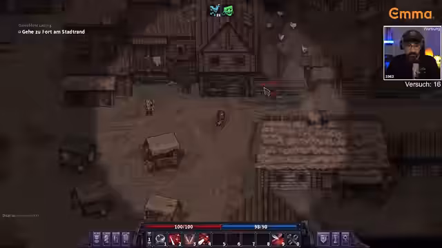 00:24:47Der Erledigung einer Quest um Weinbrand zu beschaffen bereitet Schwierigkeiten, da der benötigte Weinbrand teuer ist und einen betrunkenen Status verursacht. Gleichzeitig zeigt sich ein kritisches Problem bei der Ausrüstung: Die Brechstange, eine wichtige Waffe, ist stark beschädigt und droht zu zerbrechen. Dies zwingt den Streamer, seine Kampftaktiken anzupassen und nach Ersatz zu suchen.