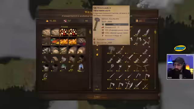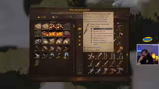 05:54:47Der gekaufte Dragonslayer wird analysiert und für eine spezifische Rolle als Hammerfighter mit Bonebreaker-Perk ausgelegt. Seine schwere Rüstung wird an einen anderen Charakter weitergegeben. Für den Nahkäufer Matt wird nach einer Axt gesucht, während der Bogenkäufer Matteo noch eine Aufwertung benötigt. Der Streamer priorisiert die Verbesserung der Waffen und diskutiert die Verteilung von Ausrüstung und Perks, um das Team effektiver zu machen.
